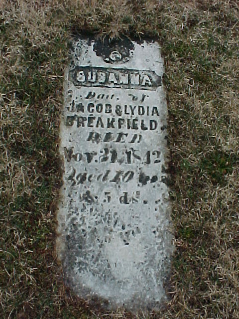 BREAKFIELD, Susannah, d/o Jacob & Lydia, d. Nov 21, 1842, aged 10y 5d