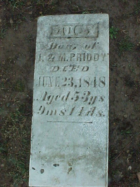 PRIDDY, Lucy, d/o J. & M., d. Jun 23, 1848, aged 53y, 9m, 14d